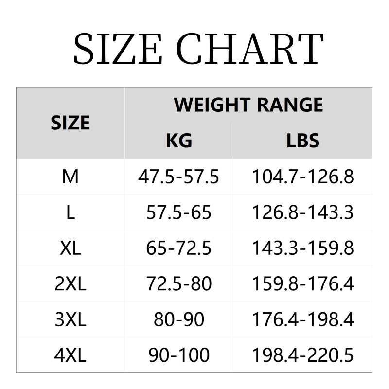 Tallas: M, L, XL, 2XL, 3XL, 4XL